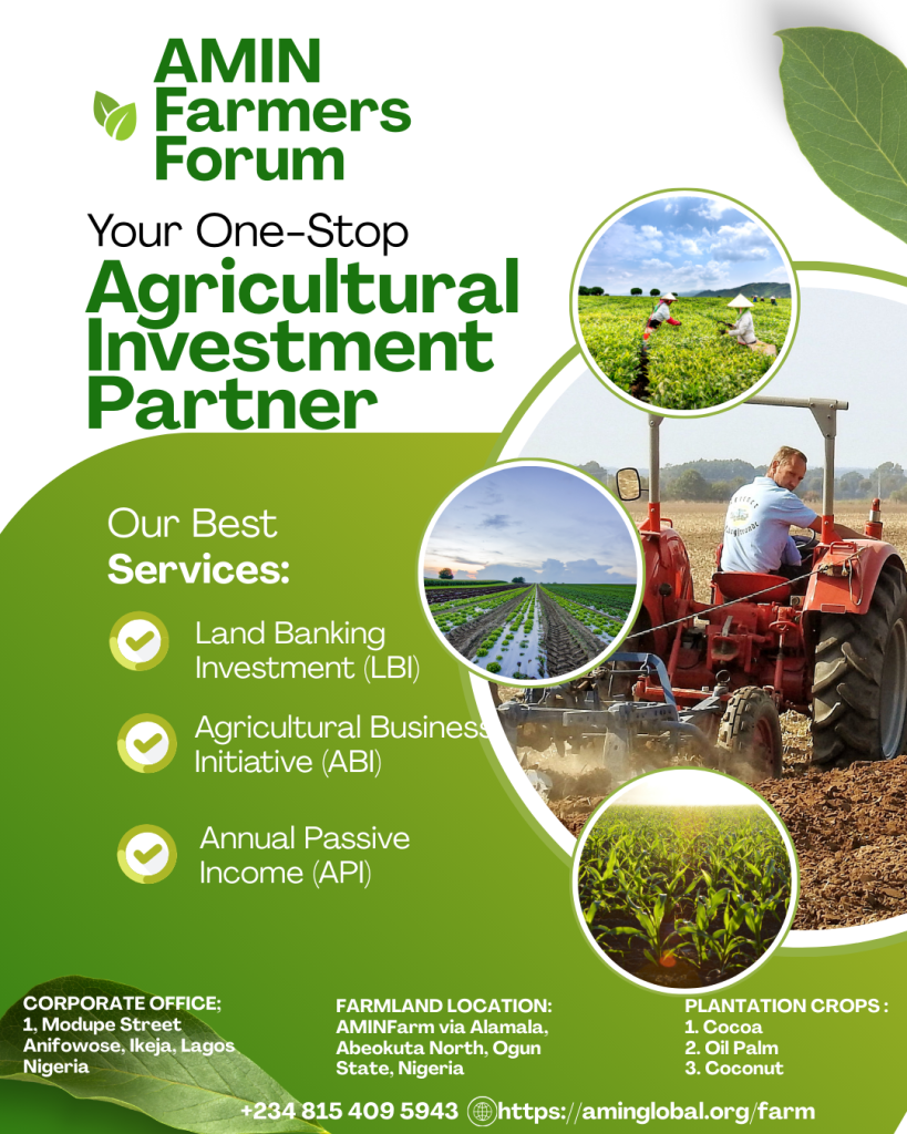 AMIN Farmers Forum (AFF) is one stop agricultural investment partner fully accredited by All Ministry International Network.  AFF is the farming directorate of AMIN equipped with facility towards growing different types of cash crops like cocoa, coconut, oil palm, etc.